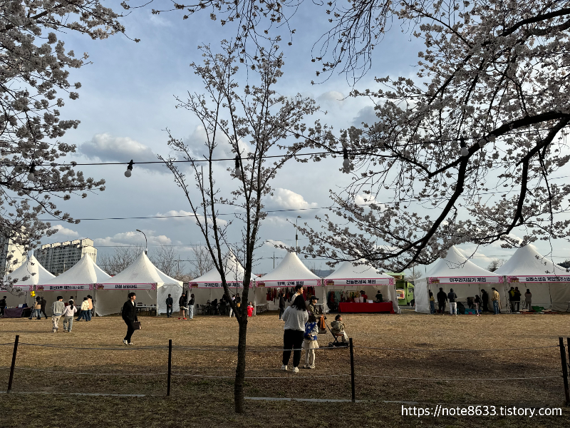 벚꽃길 옆으로 카페, 식당, 푸드트럭 등이 있어서