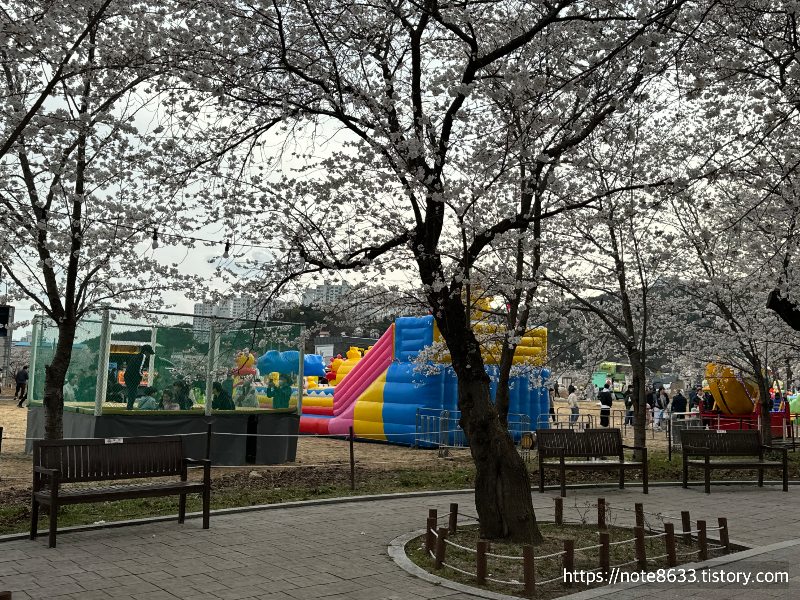 축제 기간이라 아이들을 위한 무료 놀이 시설과 체험부스가 운영되고 있다.