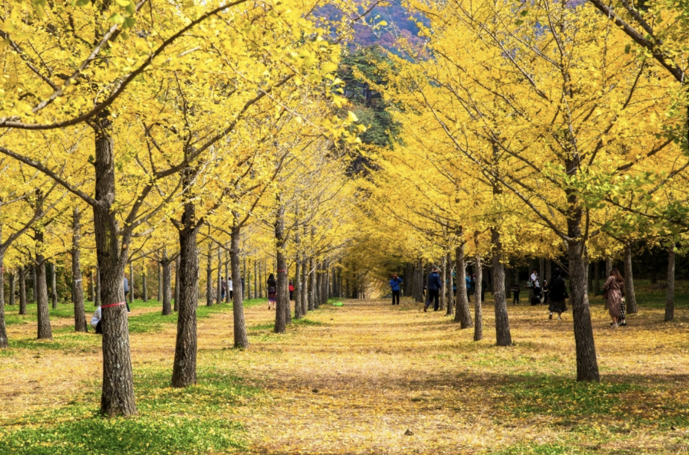 홍천 은행나무숲은 울창한 은행나무들이 길게 펼쳐진 산책 명소로, 아이와 함께 자연을 가까이서 느낄 수 있는 공간이다. 봄에는 초록빛 새싹이 돋아나면서 아름다운 풍경을 만들어낸다.