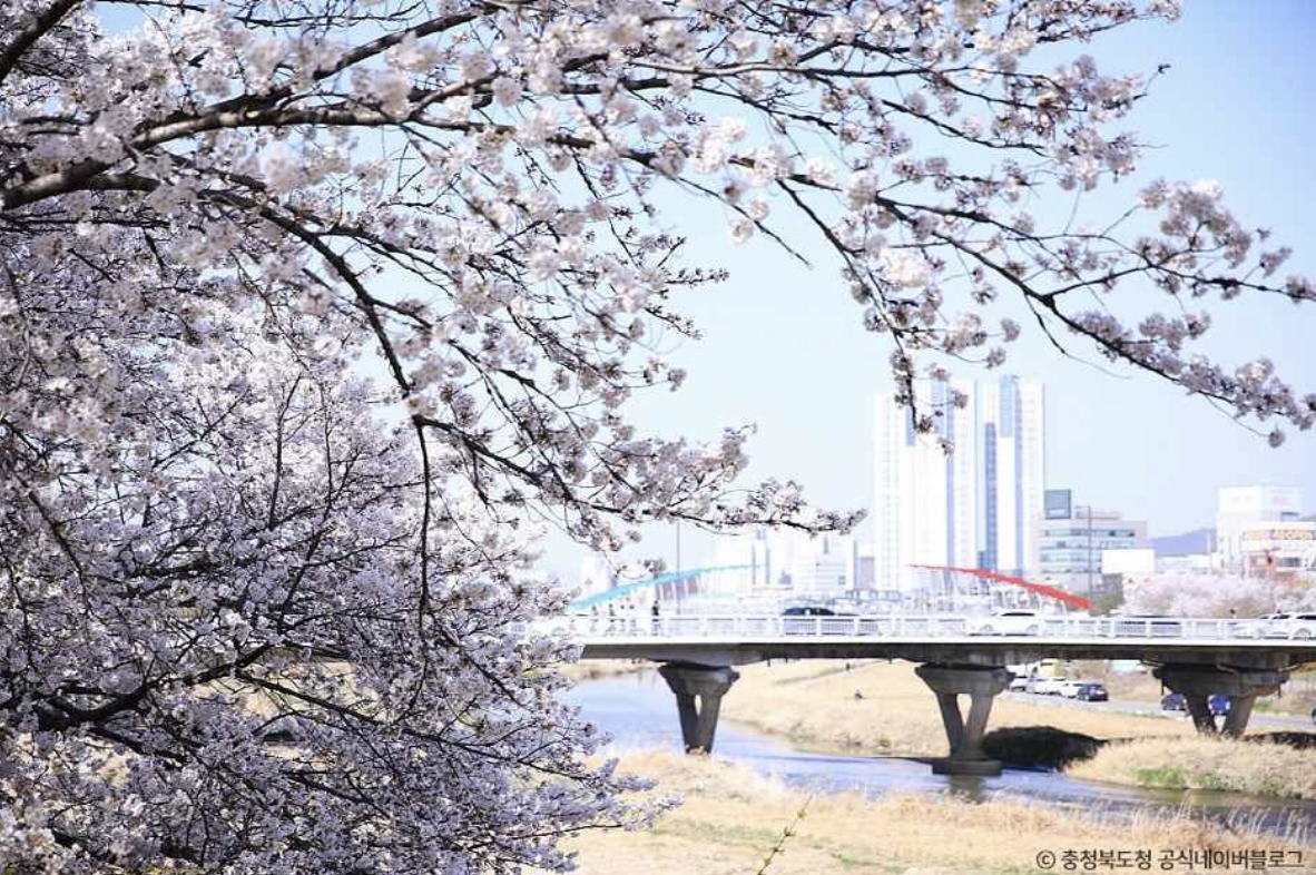 청주 도심을 가로지르는 무심천은 봄이 되면 아름다운 벚꽃길이 펼쳐지는 시민들의 사랑받는 휴식 공간이다. 강변을 따라 산책로와 자전거 도로가 잘 정비되어 있고, 곳곳에 넓은 잔디밭이 있어 아이와 함께 돗자리를 펴고 여유로운 시간을 보내기 좋다.