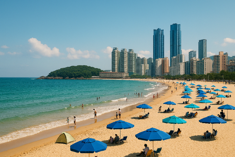 - 특징: 부산의 대표 해변. 넓은 모래사장과 얕은 물이 아이와 놀기 좋다.